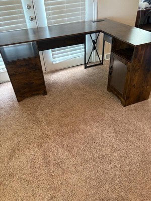 [This review was collected as part of a promotion.] Really nice L shaped desk that doesn’t take up a crazy amount of space. I love the dark brown color. It is very durable and the cabinet and drawers are very functional. It did take me a couple of hours to put it together but it was worth it!