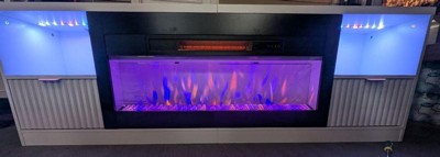 [This review was collected as part of a promotion.] This entertainment center is a solid option if you’re looking to add some style and functionality to a living room, rec room, or small home theater. Assembly is definitely a bit of a project—it took me about an hour and a half to put together by myself using power tools. That said, it does come with decent hand tools if you don’t have your own. The written instructions were surprisingly clear and well done, which isn’t always the case with furniture like this. They even explain how the twist locks work, which is helpful if you’re not familiar with them. There are several warnings throughout to prevent assembly mistakes, though you still need to pay close attention—especially with parts like pieces 17 and 18, which need to be oriented correctly. One important tip: make sure to route and hide your cords behind the fireplace panel. The flame effect is projected onto the backboard, and visible cords will definitely ruin the look. The unit comes in multiple sections, and there’s a visible center seam between the top and bottom portions. That detail annoys me a bit, though it may not bother everyone. I was pleasantly surprised by the heater. It puts out more heat than I expected and distributes it evenly. It also has a built-in timer that goes up to eight hours, which is a nice feature. The LED flame effects are also well done, offering seven flame modes (mostly orange tones with one blue option). The shelf lighting includes eight solid colors along with multiple blinking and color-changing modes. The top should accommodate most TVs, likely up to around 65 inches. The adjustable shelf can be installed on either side and at different heights, which is convenient. However, I was disappointed that only one shelf is included and that the “frosted glass” (which is really plexiglass) isn’t illuminated by LEDs. The open shelf also lacks a back panel, so you’ll be able to see through it—good for cable management, but not ideal for aesthetics.