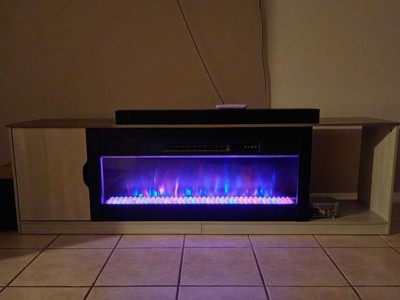 [This review was collected as part of a promotion.] This is an absolutely beautiful fireplace tv stand!!!! Quality out of the box! It does take some time to put together but patience you get a great end result! Shelves light up to display trinkets. It puts out heat! And the remote you can change the flame colors! It’s beautiful!!!!