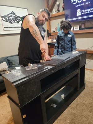 [This review was collected as part of a promotion.] This entertainment center is a solid option if you’re looking to add some style and functionality to a living room, rec room, or small home theater. Assembly is definitely a bit of a project—it took me about an hour and a half to put together by myself using power tools. That said, it does come with decent hand tools if you don’t have your own. The written instructions were surprisingly clear and well done, which isn’t always the case with furniture like this. They even explain how the twist locks work, which is helpful if you’re not familiar with them. There are several warnings throughout to prevent assembly mistakes, though you still need to pay close attention—especially with parts like pieces 17 and 18, which need to be oriented correctly. One important tip: make sure to route and hide your cords behind the fireplace panel. The flame effect is projected onto the backboard, and visible cords will definitely ruin the look. The unit comes in multiple sections, and there’s a visible center seam between the top and bottom portions. That detail annoys me a bit, though it may not bother everyone. I was pleasantly surprised by the heater. It puts out more heat than I expected and distributes it evenly. It also has a built-in timer that goes up to eight hours, which is a nice feature. The LED flame effects are also well done, offering seven flame modes (mostly orange tones with one blue option). The shelf lighting includes eight solid colors along with multiple blinking and color-changing modes. The top should accommodate most TVs, likely up to around 65 inches. The adjustable shelf can be installed on either side and at different heights, which is convenient. However, I was disappointed that only one shelf is included and that the “frosted glass” (which is really plexiglass) isn’t illuminated by LEDs. The open shelf also lacks a back panel, so you’ll be able to see through it—good for cable management, but not ideal for aesthetics.