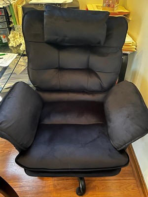 [This review was collected as part of a promotion.] First I will start with what I love about this product: I love the soft velour finish. I like how there are side pockets - it honestly feels a bit like a lazy chair in that you can adjust the back to lean back and put some snacks or a tv remote in the side pocket (or maybe a game controller if that’s your thing). So it’s great for watching tv while reclined. But what I didn’t like was the pillow on top. This makes it virtually impossible to use as a desk chair - the pillow is positioned in such a way that when sitting upright you need to hunch over. It’s not comfortable at all! Maybe this would be good in a dorm room setting where you’d like a desk chair to also function as an easy chair? Either way, it did not work for me as a desk chair. Can’t really speak to setup because my husband did that. It took him around 45 minutes.