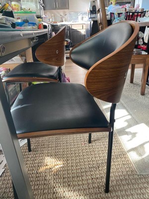 Bestier Dinning Chair Set of 2,Bentwood Living Room Chairs, PU Leather Ergonomic Kitchen Chairs Wooden Armless Chairs, Mid-Century Office Chairs,Black