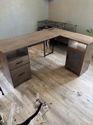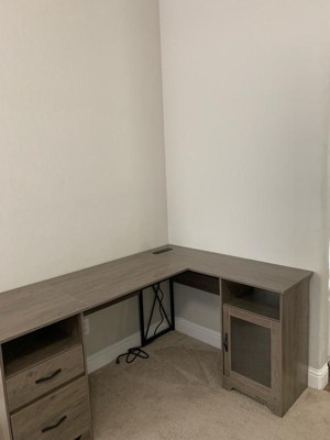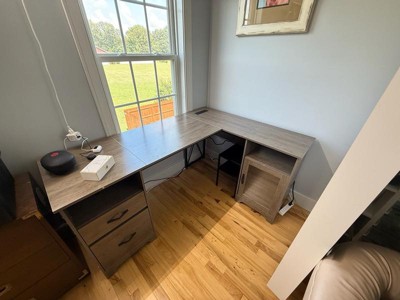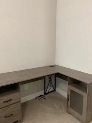[This review was collected as part of a promotion.] Really nice L shaped desk that doesn’t take up a crazy amount of space. I love the dark brown color. It is very durable and the cabinet and drawers are very functional. It did take me a couple of hours to put it together but it was worth it!