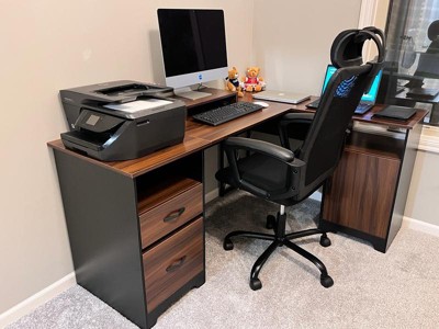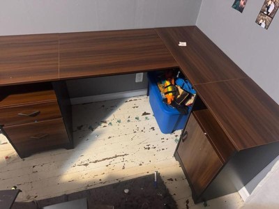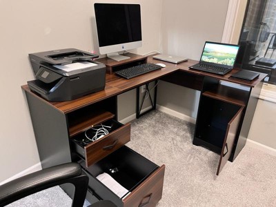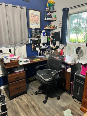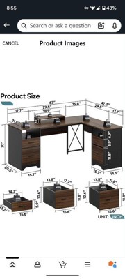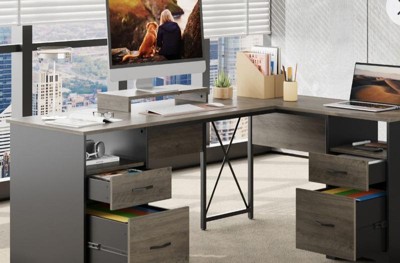 A: Hi there! The L Shaped Home Office Desk depth of the desk surface is 21.6 inches. You can refer to the detailed size chart of the page or contact us.