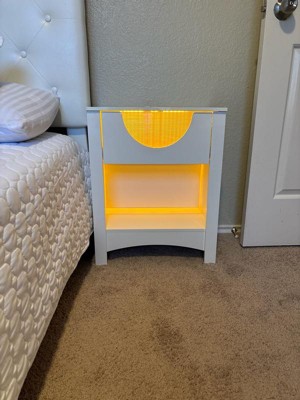 Bestier Nightstands Set of 2 with Charging Station, Modern LED End Table Bedside Table with Drawer for Bedroom & Living Room, Bright White