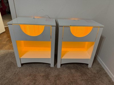 [This review was collected as part of a promotion.] These nightstands were easy to put together and came with everything including tools to put them together. The directions were clear enough to follow step by step as well. They are sturdy but cannot hold a lot of weight. The led light is one color, an orange, which is nice at night. Overall, these are good nightstands for small spaces.