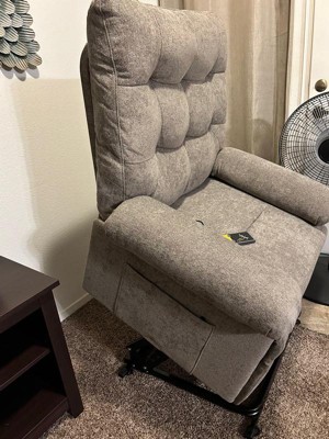 [This review was collected as part of a promotion.] Beautiful, very nice comfortable chair. The assembly was very easy and I did it myself and took less than 30 minutes, the lift is quiet and smooth and has many functions. I wouldn’t suggest for someone that would sit in for the entire day, otherwise it is fine, fabric is soft and seems it would be easily cleaned. It is very sturdy and well made. It has no chemical or other smell. It lifts higher than I thought it would and someone could very easily stand without much effort.