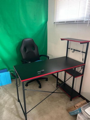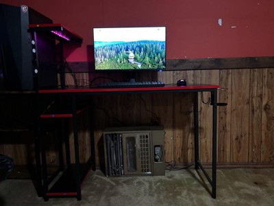 [This review was collected as part of a promotion.] I’m so impressed with how sturdy and durable this desk feels. It’s perfect for my husband he likes red and black. I think it will be easier for him to stay organized with his “office”. It took us a little while to put together but we figured it out!