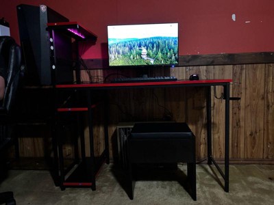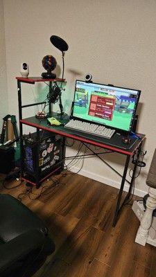 This desk was a gamer changer for my set up, my monitors are at eye level which is always welcome, I have more room for my microphone and other accessories. It's also pretty sturdy and holds everything fairly well.