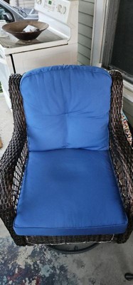 [This review was collected as part of a promotion.] Great glider. Although not my personal style, it is a good piece. The chair glides smoothly and the cushions are comfortable. This is a deep seat, so if you're under 5'5" you'll need a bolster or pillow to sit back and still have your feet touch the ground. Table is a nice size. Note that the feet aren't weighted, so if you're in an area that gets windy you'll need to not let it out so it doesn't flip with the glass top. Was easy to assemble without help.