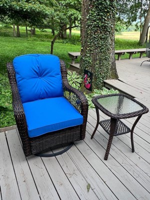 [This review was collected as part of a promotion.] I jumped at the opportunity to get this set! The chair is very comfortable, swivels and rocks. The table is the perfect height for the chair and is great for setting drinks on. We put this out on our front porch and it made the space inviting. I also love that it came with lights the we ran around the whole chair. There are tons of settings for the lights and they can be controlled by your phone. All around i love this little set! I received the chair and table in exchange for my honest review.