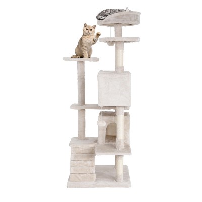 BestMassage Cat Tree 36 inch Tall Cat Tower for Indoor Cats with Cat Scratching Post Multiple Platforms Cozy Condo and Hanging Toy, Beige