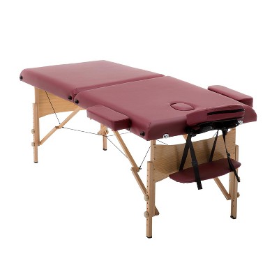 BestMassage Massage Bed Portable 2 Fold Massage Table with Towel Hanger Oil Pouch Half & Round Bolsters, Burgundy