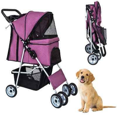 BestMassage Pet Stroller 3/4 Wheels Dog Cat Stroller Jogger Stroller with Removable Liner and Cup Holder Travel Folding Carrier