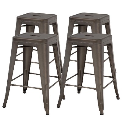[ Sleek and sturdy ] This set of four bar stools is made from strong iron and designed through a welding process to be perfect for any kitchen, office, bar, or dining room. Each stool has an X-brace for added support and stability, holding up to 330 pounds. The footrests at the bottom are great for relaxing your feet after a long day.