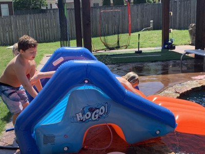 [This review was collected as part of a promotion.] With the pandemic going on, my family and I are always looking for ways to have fun at home. We have an above ground pool and wanted a slide for it. After searching online, I came across this inflatable "H20GO Giant Pool Water Slide". I figured it would be fun and safe for my ten-year-old and five-year-old to slide on into the pool. It sets up right on the edge of the pool. I love that this slide has built-in sprinklers to help keep the slide slippery for each time the kids going down the slide into the pool. Another plus, it that the slide has four water chambers that need to be filled to give it the stability it needs on the side of the pool. We cannot wait till summer to be able to play on the new slide!!