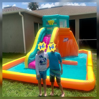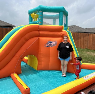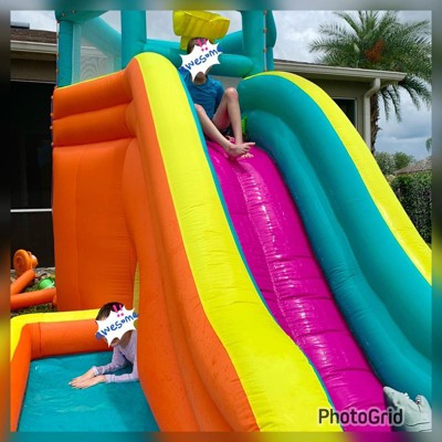 My kids absolutely love this inflatable waterpark. I bought it for a party. (Much cheaper than renting locally) And little did I know that we’d be using this every single weekend. The overhead water dump feature is pretty cool. As well as the tunnel underneath. I would recommend putting a small tarp near the entrance of the inflatable for kids to remove their shoes and wipe their feet. It would prevent grass and dirt being transferred inside the inflatable. Follow me on IG @oneflymama for more fun summer ideas. I have a video review of this item: https://www.instagram.com/reel/C8YADRaA9Bu/?igsh=MWh1dTQ3OTF2a3dmZQ==.