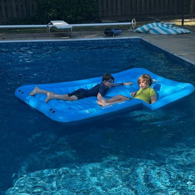 [This review was collected as part of a promotion.] I have two small children and they love to climb on the raft to play. It’s big enough for them to roll around on top of the water and it makes them comfortable around water. It’s thick and durable. Easy to carry around and assemble.