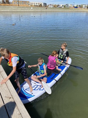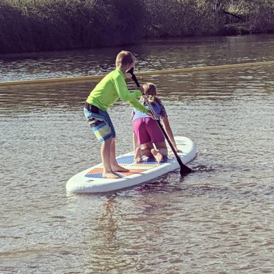 [This review was collected as part of a promotion.] My kids had such a blast on this. It's versatile and they were able to kayak, paddleboard, and take the little ones for a "ride" on it. It was so easy to inflate and deflate.