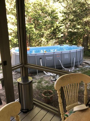 This is the perfect size pool for a small yard, I read reviews that the filter was under-powered so I bought an Intex sand filter pump and adapted it to the pool inlet and outlets. I loved this pool right up until I tried to hook up a pool vacuum hose to it. You cannot. The inlet to the filter is less than an 1" in diameter. The smallest size vacuum hose available is 1 1/4" in diameter. Who designs a 3600 gallon pool without the ability to clean it unless you drain it? . The suggestion in the book that comes with the pool suggests that you clean your feet in a bucket before entering. Well, that MIGHT reduce some sediment, but what about the wind blowing dust into your pool. I bought a solar cover and dust will still get in around the edges and drift down the sides and onto the bottom. I am truly disappointed that this manufacturer did not even note on the pool description that it was not adaptable to traditional pool cleaning equipment (other than a manually operated broom!) Check the product specifications and make sure any pool you buy has at least an 1 1/4" inlet / outlet so you won't get surprised like I did when you can't clean your pool.