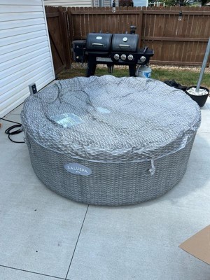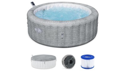 Bestway SaluSpa Bali Smart AirJet Inflatable Hot Tub Round Portable 4 to 6 Person Spa with 140 AirJets, App Control and EnergySense Cover, Grey Rattan