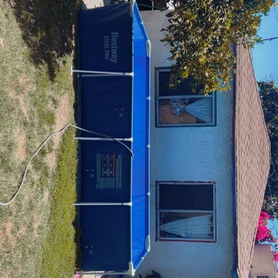 [This review was collected as part of a promotion.] I recieved the bestway steel pro rectangle pool to try out in exchange for my honest review. This is a great pool. My yard is hilly and hard to find level area and this fit perfect. The whole family can float in it. It was asy to set up and maintain. Great quality.