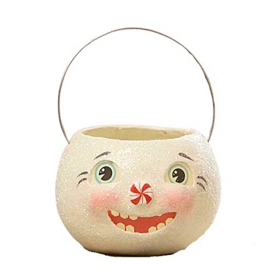 Bethany Lowe Surprised Snowman Bucket Petit - One Bucket 3 Inch, Paper - Peppermint Paper Eyes Mouth Tj2332 Measures Approximately 3 In H X 4.25 In W X 4.25 In D (HxWxD). Includes One Bucket.