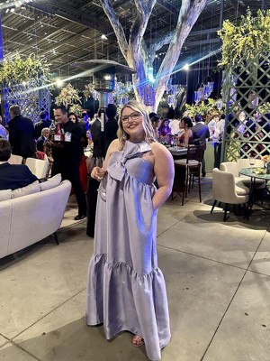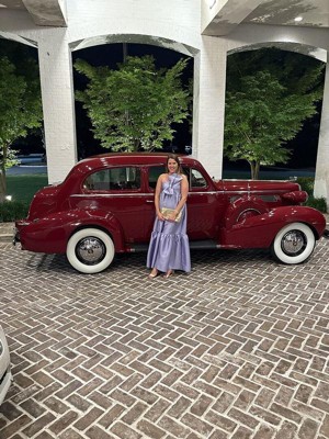 This dress is absolutely gorgeous! The vibrant Lilac color is stunning, and so feminine. The fabric is lightweight and drapes beautifully, creating a flattering silhouette for an expecting mom (8 months). It fits true to size, and I received so many compliments when I wore it. It's definitely a versatile piece that can be dressed up or down, and it makes me feel so confident and beautiful