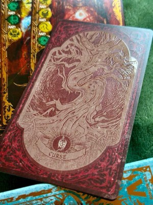 - 90+ PREMIUM TAROT-STYLE CARDS: The Tarot-sized cards—including 11 foil cards—feature haunting, full-color illustrations of Curses, Omens, nightmarish characters, and powerful objects