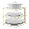 Maximize your kitchen storage with the Better Houseware Corner Storage Rack. Crafted from durable brass, this rack is designed to fit snugly into corner spaces, effectively doubling your shelf capacity. Its open design ensures easy visibility and access to items like plates, bowls, and mugs. Measuring 9.5 in. by 9.25 in. by 9 in. high, it's the ideal solution for organizing and decluttering your kitchen cabinets. _