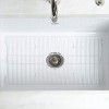 The White Extra-Large Coated-Steel Sink Protector from Better Houseware safeguards your sink from scratches from cookware, dishes, and cutlery. It also has coated feet to protect the sink from scrapes. The sink rack protects dishes and delicate stemware, and keeps them above the draining water. It comes with a center opening for access to the sink’s removable drain.