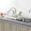 Help your dishes dry while keeping your counters safe with Better Houseware's Large Expanding Dish Rack. It holds 10 plates and includes a removable 2-section cutlery holder. The adjustable spout is able to drain directly into the sink._