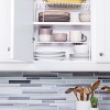 Organize your closets and cabinets with Better Houseware's space-saving White Medium Storage Shelf. It automatically creates extra space on a shelf or in a drawer. It's ideal for organizing everything from sheets and towels, clothing, shoes, and handbags to dishes, pantry products, office or art supplies, sports equipment, toys, and games. The only limit is your imagination._