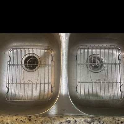 The Extra Large Stainless Steel Sink Protector from Better Houseware safeguards your sink from scratches from cookware, dishes, and cutlery. It also has coated feet to protect the sink from scrapes. The stainless steel rack protects dishes and delicate stemware, and keeps them above the draining water. Each has a center opening for access to the sink’s removable drain. _