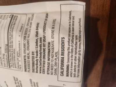 The picture of the back of the bag is not accurate. It has a WARNING: consuming this product can expose you to Cadmium, which is known to the State of California to cause cancer and birth defects or other reproductive harm.