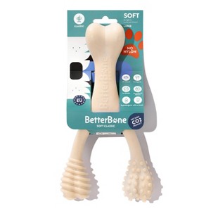 - BetterBone SOFT, the ultimate chew toy for your dog's enjoyment, health, and safety. Crafted from all-natural, food-grade ingredients, designed to promote health and dental hygiene with a softer and natural composition compared to nylon and other petroleum-based products. Our unique teeth-cleaning ends reach tricky hard-to-clean areas. Pair this with our natural, non-toxic, hypoallergenic, and splinter-resistant composition, BetterBone SOFT is the perfect chew toy for your teething puppy, or older dog and light to moderate chewers—the perfect replacement for nylon or rawhide. SOFT will not last as long as nylon but will be safer on teeth.