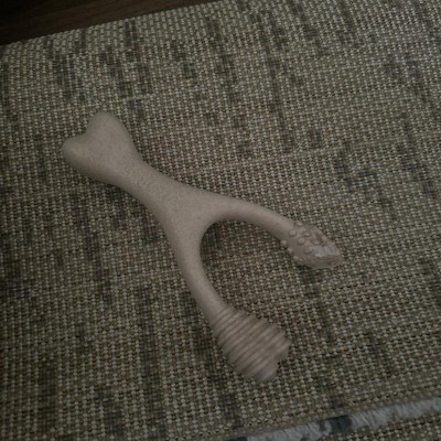 [This review was collected as part of a promotion.] This medium density small size dog bone is perfect for big and small dogs alike. It is very sturdy and it doesn’t break off into a million pieces or create sharp pieces that might hurt your furry friend. It has become a favorite toy/treat in this household. It is great for your dog’s teeth and such a better alternative than most bones on the market. I would purchase again. The value is great. I received an incentive to write this review.