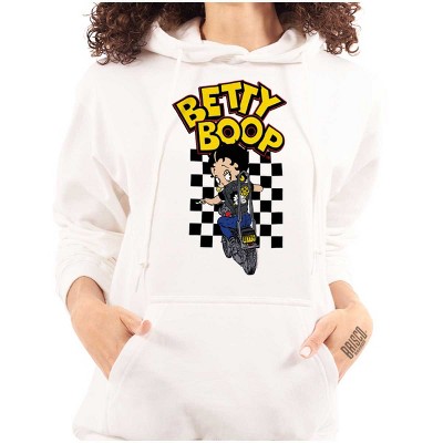 Betty Boop Biker Glamour On Wheels Hoodie Sweatshirt Women Licensed Brisco Brands White s