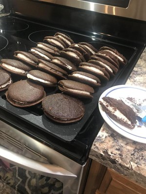 enriched flour bleached (wheat flour, niacin, iron, thiamin mononitrate, riboflavin, folic acid), sugar, corn syrup, cocoa processed with alkali, leavening (baking soda, monocalcium phosphate, sodium aluminum phosphate), contains 2% or less of: modified corn starch, palm oil, corn starch, propylene glycol mono and diesters, monoglycerides, salt, dicalcium phosphate, sodium stearoyl lactylate, xanthan gum, cellulose gum, carob powder, artificial flavor.