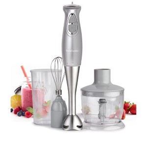 - Immersion Blender Accessories: Our electric hand blender comes with accessories like an electric whisk, immersion blender beaker, and chopper bowl for appetizing meals with a desire to delight.