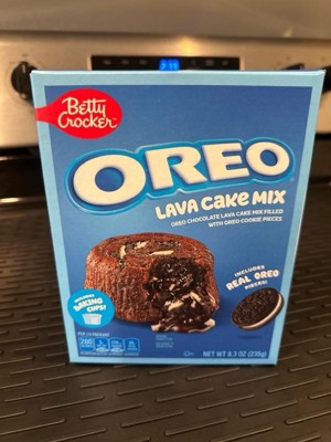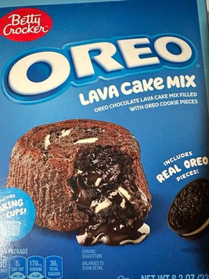 - BETTY CROCKER & OREO: Betty Crocker Chocolate Lava Cake Mix with real OREO Cookie Pieces you can sprinkle into the batter before baking
