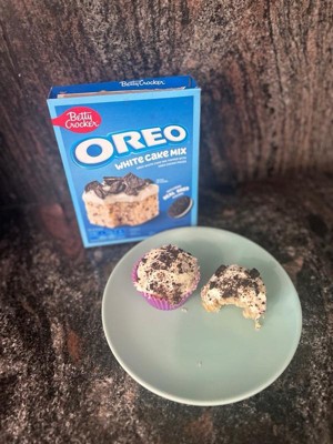 The OREO Cookie taste you love comes in this Betty Crocker cake baking mix. Easily prepare delicious dessert with Betty Crocker OREO White Cake Mix, combining real OREO Cookie Pieces with a moist texture for an irresistible treat. This cake mix with OREO Cookie Pieces has all the dry ingredients you need to make dessert at home in just three steps. Simply add water, oil and eggs to the baking mix, and stir to combine. Then bake according to the directions on the package. Choose to make a square cake or round cake, or use it as a cupcake mix to make 12 cupcakes. Decorate your finished, cooled cake with the addition of Betty Crocker OREO Crème Flavored Whipped Frosting or whip up your own baked creation such as cake pops, birthday cakes, and more with the delight of delicious OREO Cookie Pieces. Use this cake mix to bake party treats, after dinner desserts, or sweet anytime snacks. For more than a century, Betty Crocker has been a popular creator of simple, delicious recipes. Today, the Betty Crocker kitchen is still providing convenient, tasty dessert mixes, frostings, and convenient meal options and side dishes.