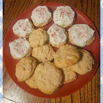[This review was collected as part of a promotion.] First off, it took a little while to finally find this one! I was super excited to bake these because peppermint is one of my oldest sons favorite flavors. To start out, the dough seemed a little weird to work with. The ingredients just didnt seem to blend together smoothly. Baking was super simple, approximately 15 minutes for a golden brown cookie. The texture was quite cakey but yet brittle. My family did wish they were less cake like and more crispy cookie. The peppermint was incredibly mild, almost non-existent. It was more sugar cookie with a light hint of mint. Definitely wish there was a little more flavor there. We tried them as baked but I also decided to frost a few with vanilla icing and topped with red sugar crystals and crushed peppermint. This definitely brought the flavor up. I would recommend this if you wanted a simple base sugar cookie thats christmasy with the red peppermint and planned to jazz them up with frosting and decorations.