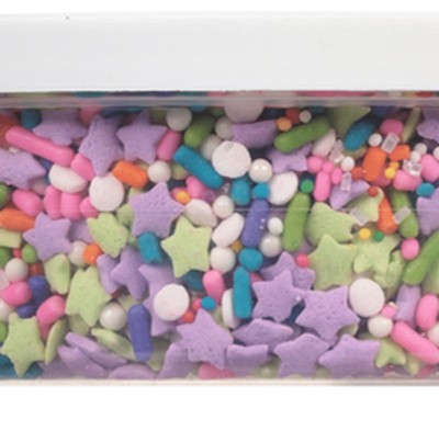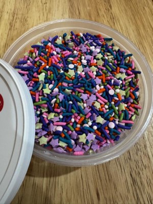 Betty Crocker™ Unicorn fusion sprinkles are a fun and delicious way to embellish your favorite cupcakes, cakes, cookies, or other sweet treats. This bright colored fusion mix is perfect for birthdays, holidays, and everyday celebrations. Simply sprinkle them on top of your desserts for an elevated and easy-to-achieve look. Mix contains a combination of sprinkles, sugars, nonpareils, confetti, and stars giving your dessert texture and crunch. Use all at once or keep in pantry for any of your decorating needs! Tub format makes this item easy to use for all ages.
