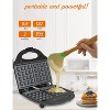 - Power On Light: Time your mini waffles perfectly with an easy-to-see power on light. Avoid burning or undercooking and enjoy waffles made from breakfast pancake, waffle & baking mixes.