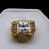 • Stunning Gemstone: The centerpiece boasts a princess-cut simulated diamond cubic zirconia gemstone, approximately 8mm (2 carats), set within an 11.5mm-wide top of the ring.