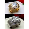 • Stunning Gemstone: The centerpiece boasts a princess-cut simulated diamond cubic zirconia gemstone, approximately 8mm (2 carats), set within an 11.5mm-wide top of the ring.