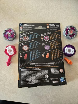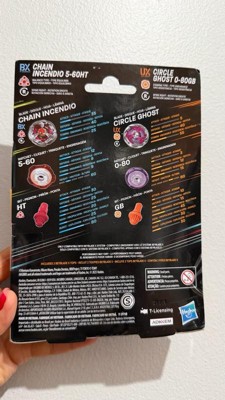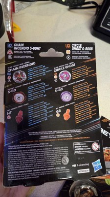 - STRATEGIZE YOUR BATTLES: The Circle Ghost 0-80GB top maintains its stamina even when attacked with consistent spinning regardless of opponent. The Chain Incendio 5-60HT top combines blade performance and height to battle opponents of all heights
