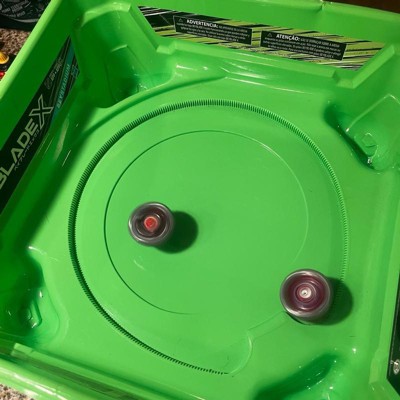 Warning: Only use BEYBLADE X tops with a BEYBLADE X Beystadium. DO NOT LEAN OVER STADIUM when tops are in play. Do not use stadium on tables or other elevated surfaces. Tops may bounce up and hit eye and face.