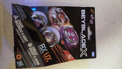 Experience Beyblade X, the next generation of Beyblade stadiums, launchers, and tops! The Beyblade X Circle Ghost 0-80GB & Chain Incendio 5-60HT Dual Pack Set which includes 2 right-spinning tops (Beystadium and launchers required, sold separately). Launch right into battle or reconfigure the interchangeable blade, ratchet, and bit of this Booster Pack with those of other Beyblade X tops (sold separately) to build your perfect Beyblade top. Beyblade X features the X-Celerator Gear System innovation to level-up your game. When the gear of a Beyblade X top engages the rail of the Beystadium arena, it can super-accelerate into an Xtreme Dash rocketing it around the stadium for crushing collisions and epic bursts. Bladers launch their tops into fierce clashes against their opponent’s scoring points with each confrontation – first to score 4 points wins. Hasbro Beyblade toys with authentic Takara Tomy die-cast metal tops make great kids gifts for boys and girls ages 8 and up.